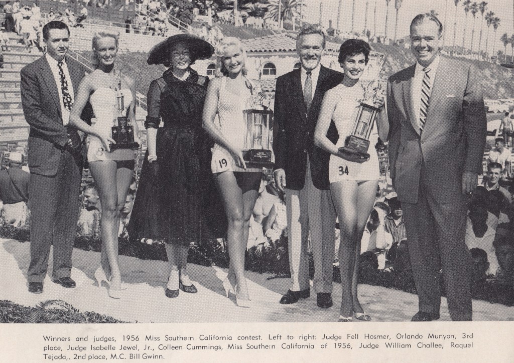 In 1956, a star was born – or at least made her debut on the Oceanside’s beach stage. Raquel Tejada was the second of three finalists of the famed beauty contest. She would go on to win the title of Miss Fairest of the Fair at the San Diego County Fair. Later she changed her name and became an actress and 1960s sex symbol Raquel Welch.
