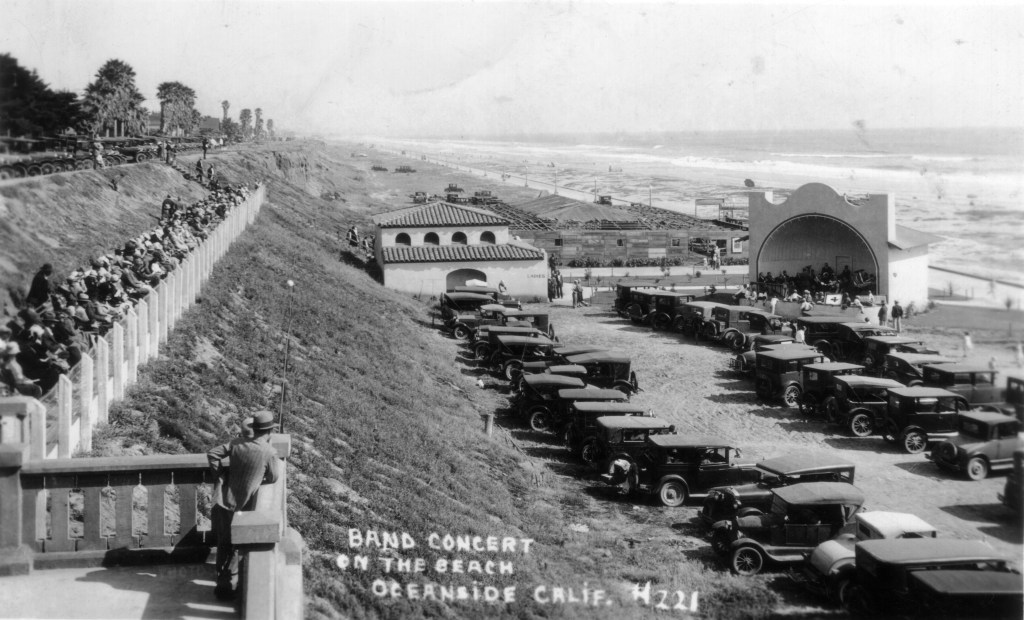 Richardson Brothers constructed the bandshell which was completed in June 1950 for the annual Oceanside Beach Celebration. Saunders Construction Company laid the large 14,000 square concrete slab to be used particularly for square dancing which was popular at the time. The concrete “mat” as it was referred to, was also used for roller skating, volley ball games and shuffleboard.