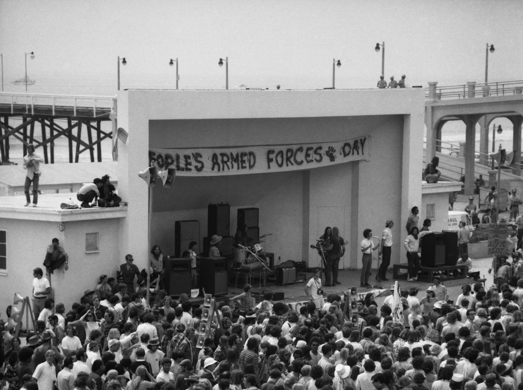 During the Vietnam War the bandshell and stadium were used for demonstrations. Black Panther Angela Davis was a speaker at one such protest, drawing thousands.
