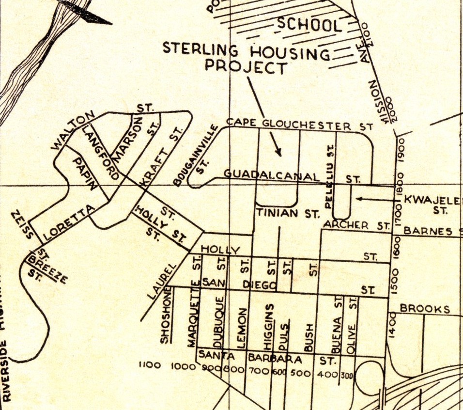 Sterling Housing was a large Federal Housing development for the military and their families built in 1948. 648 units were built on 45 acres and was nearly the size of Eastside itself.