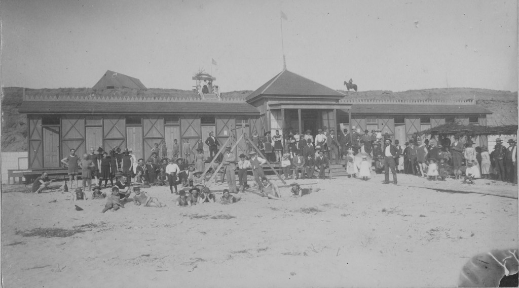 Dressing room in background (right) in 1940. Oceanside Historical Society, Marjorie Johnson collection