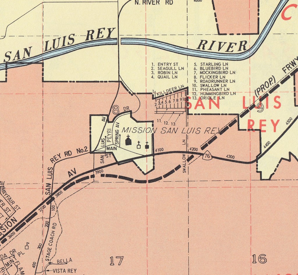 1969 Thomas Guide showing that the town of San Luis Rey and the Mission were part of the County and not city limits.