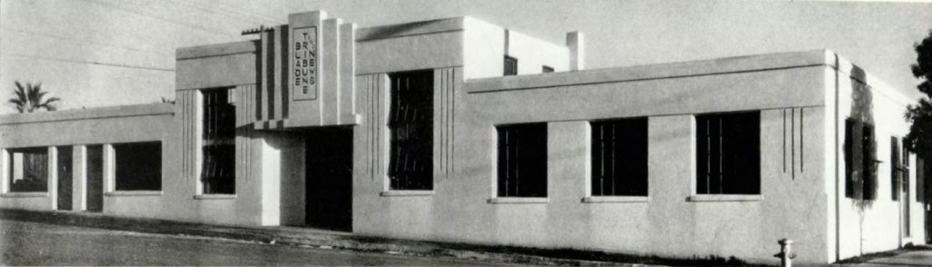 Forrest Leroy and Flora (Kettering) Dodson were both natives of Illinois, married in 1907. The couple had two daughters, Marie and Edith. In 1948 the Dodsons purchased property on the southwest corner of Morse and Hill Streets (Coast Highway) from Clifford Brodie. In June of that year a permit was issued to build a small motel called Dodson’s Motel at 1607 South Hill Street for a cost of $19,000. A neon sign was erected in December 1948 and the motel was completed and ready for guests.