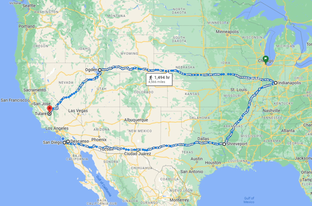 John Caves would begin an “illustrious walking career” two years later in 1909. No official record was found of the starting point or date but in September 7, 1909, the Quincy Journal announced that Caves had arrived in Macomb, Illinois.